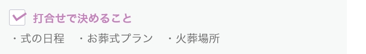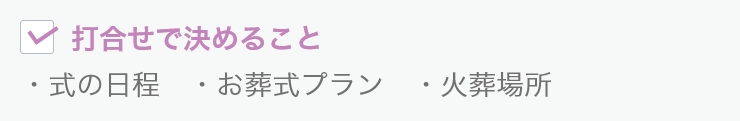 ご葬儀のプランや費用、お火葬日時について打合せいたします。ご家族様を想いながらご納得するまでお決めください。